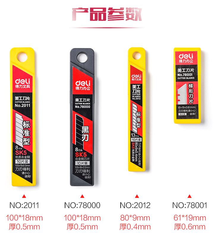 得力美工刀片 標準型8盒(80片) 用30度雕刻貼膜專用墻紙壁紙大碼梯形刀片切紙80片裝批發(fā)